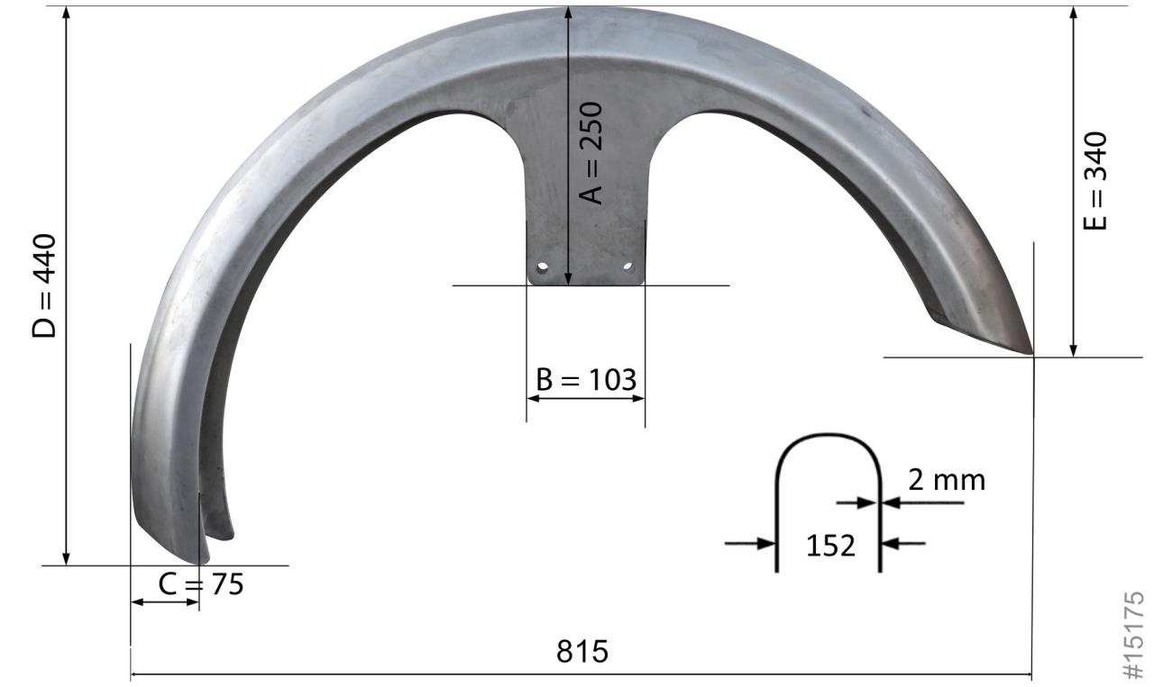 - 1x Stahl-Heck-Fender 152 mm, 2 mm stark