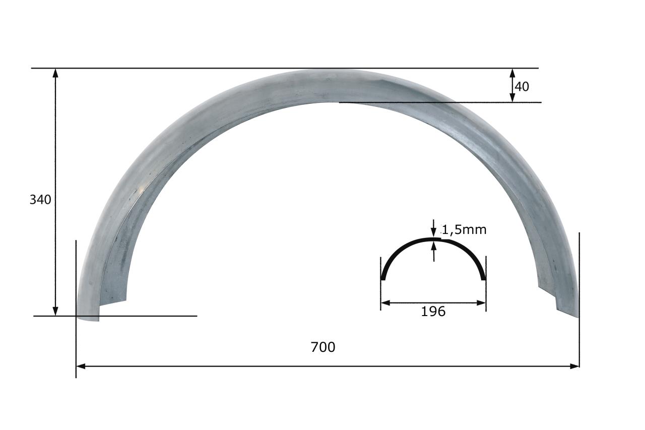 - 1x Stahl-Heck-Fender 196 mm, 1,5 mm stark