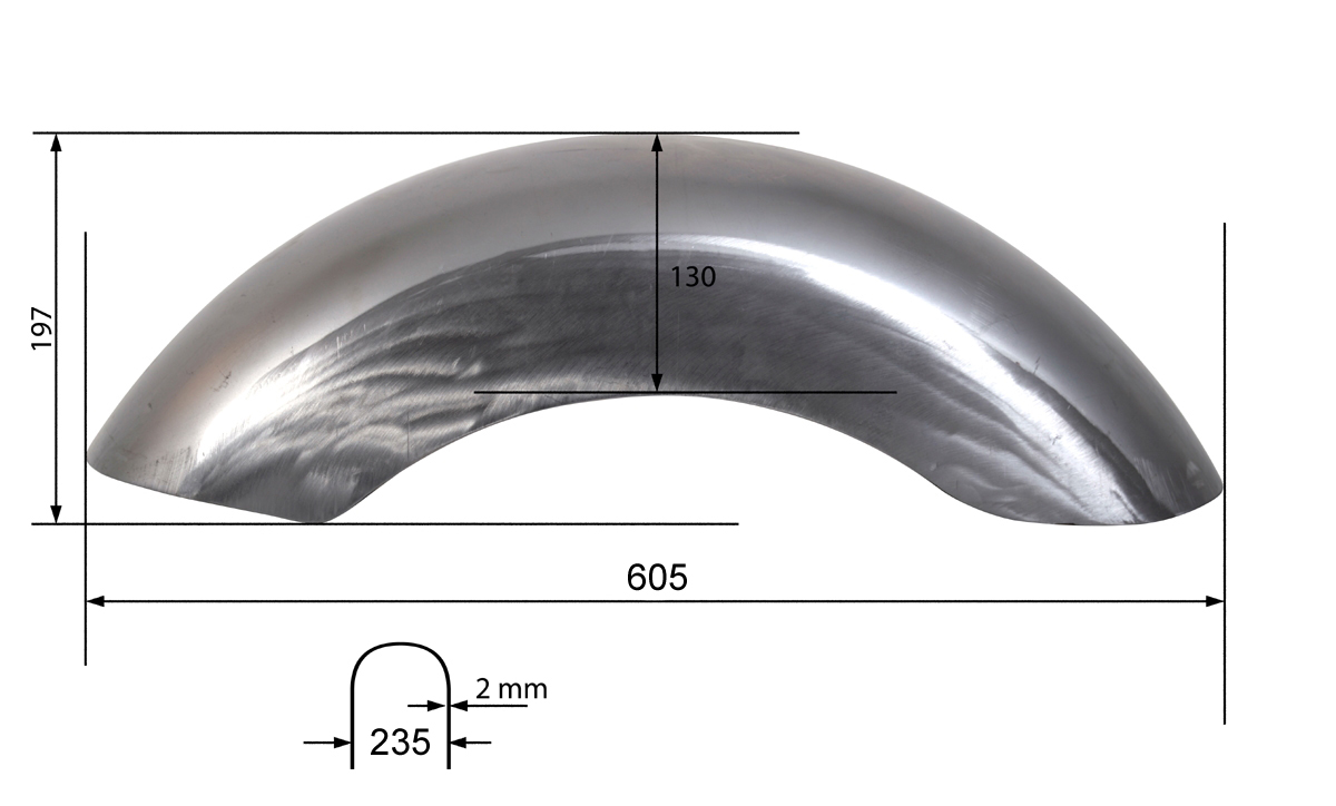 - 1x Stahl-Heck-Fender 235 mm, 2 mm stark