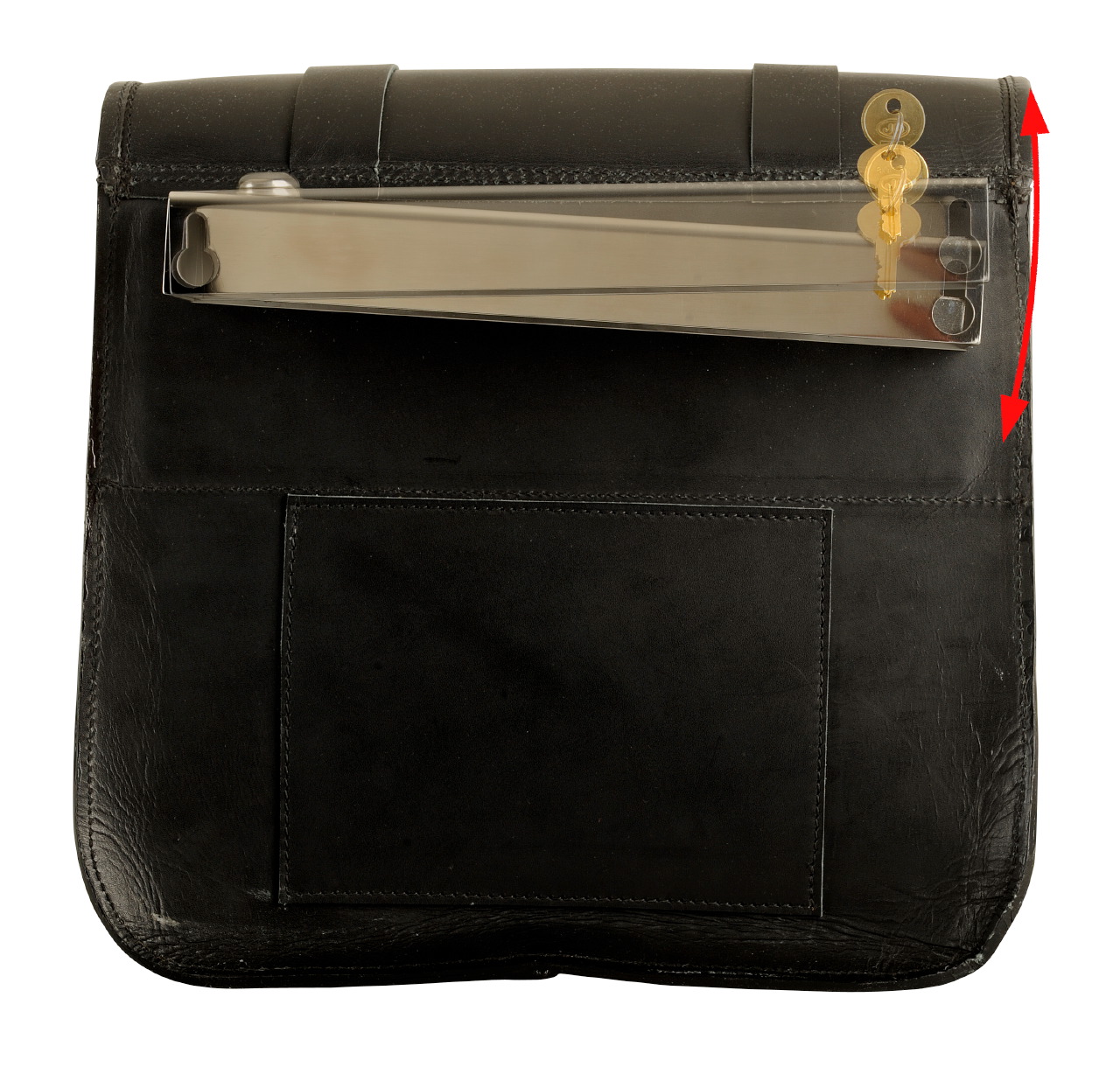 - Eingenähte 3 mm starke Aluminiumplatte auf der Taschenrückseite sorgt für mehr Stabilität und eine variable Befestigung