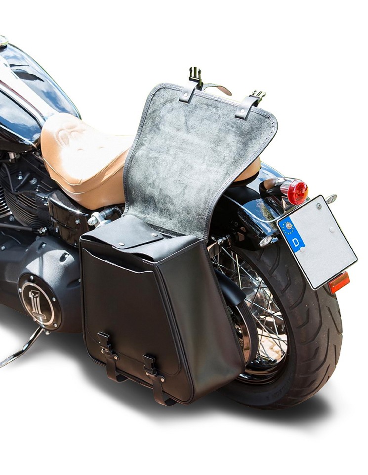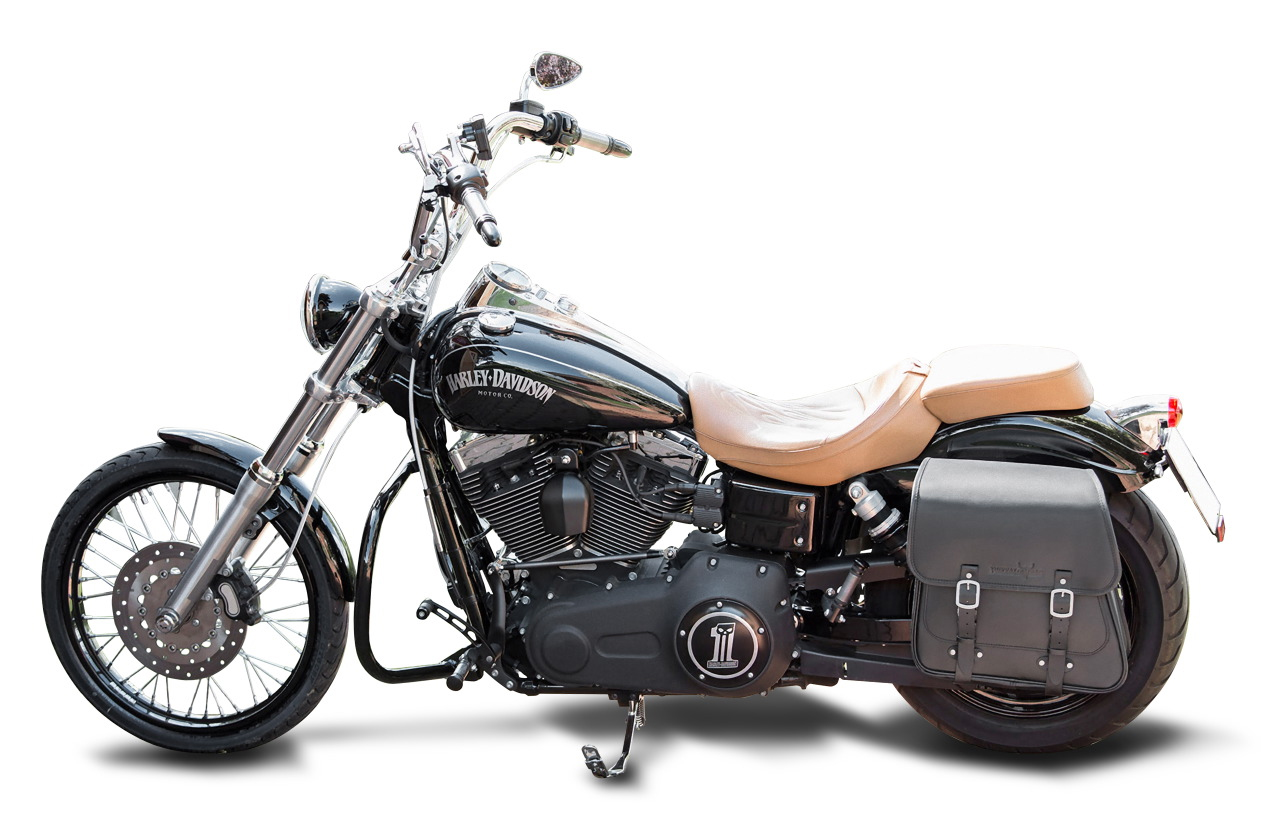 Saddlebag "Boston" 28 litres with removable "Easy-Fit" bracket, distance roll and turn signal relocation kit suitable for Harley-Davidson Dyna models (1991-2017). Not suitable for the Fat Bob (2008-2017).