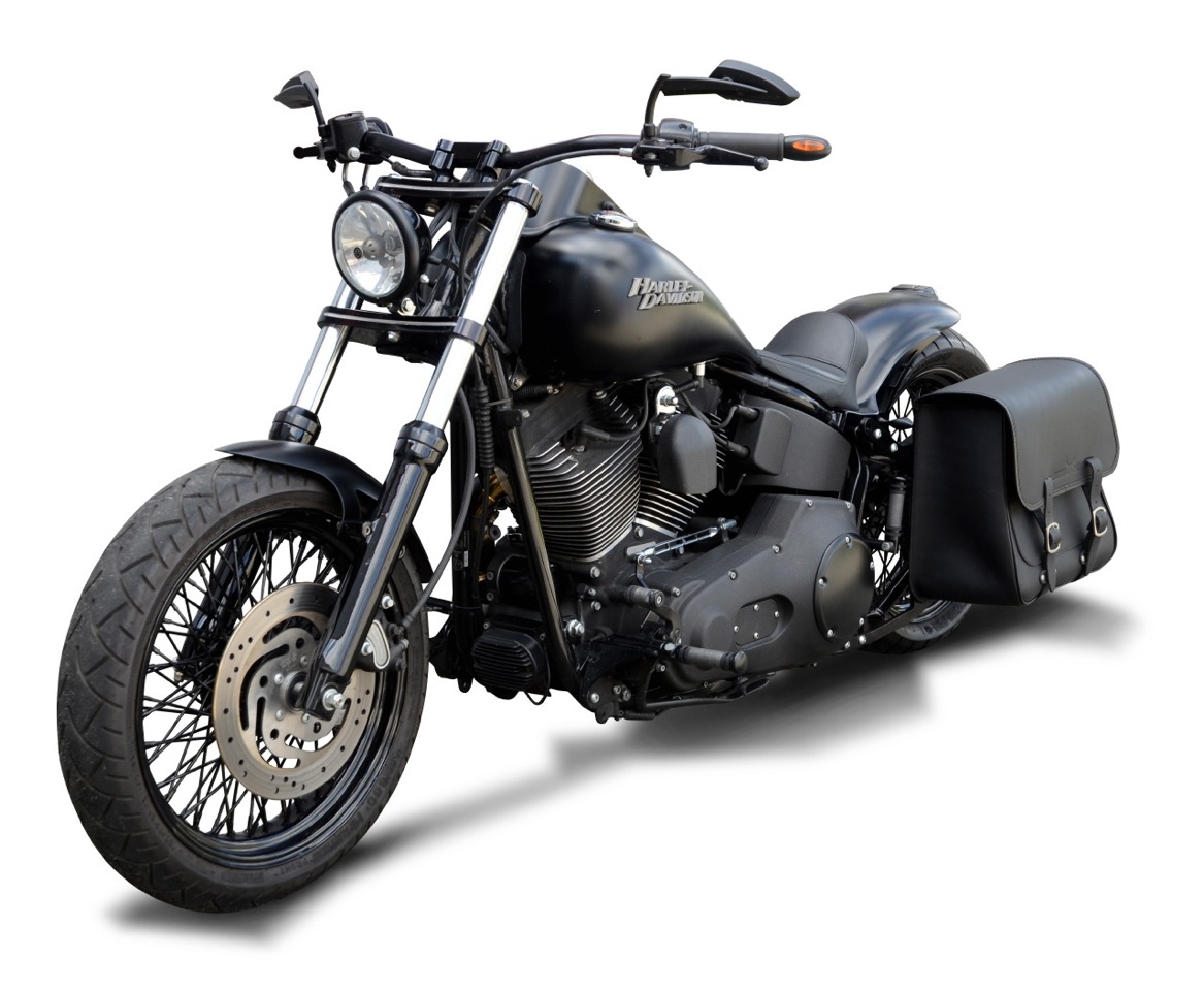 Saddlebag "Boston" 28 litres with removable "Easy-Fit" bracket and distance roll for 25 mm axle suitable for Harley-Davidson Softail models. Not suitable for Slim, Blackline, Breakout and Rocker models!